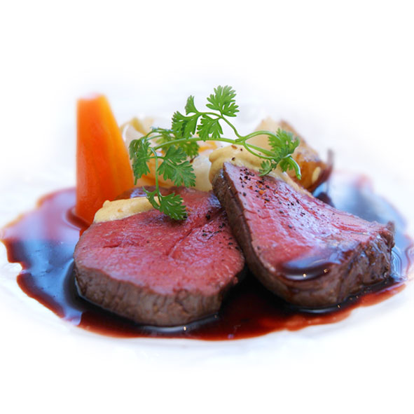 *Amuse-bouche: Beetroot mousse with Norwegian salmon marinade, served cocktail style *Soup: Pumpkin potage with cream cheese *Appetizer: Choose from the following: ・Sea bream carpaccio with vegetables, various vinaigrettes ・Lily root royale: Pan-fried foie gras, truffle aroma, and prosciutto *Fish dish: Kushiro whelk and scallop risotto with seven herbs Beurre blanc sauce and red wine sauce *Meat dish: Choose from the following: ・Roasted Rankoshi venison with crème de cassis, duxelles, and herb farci ・Roasted beef tenderloin with Bordelaise sauce ・Beef cheek stewed in red wine *Dessert
